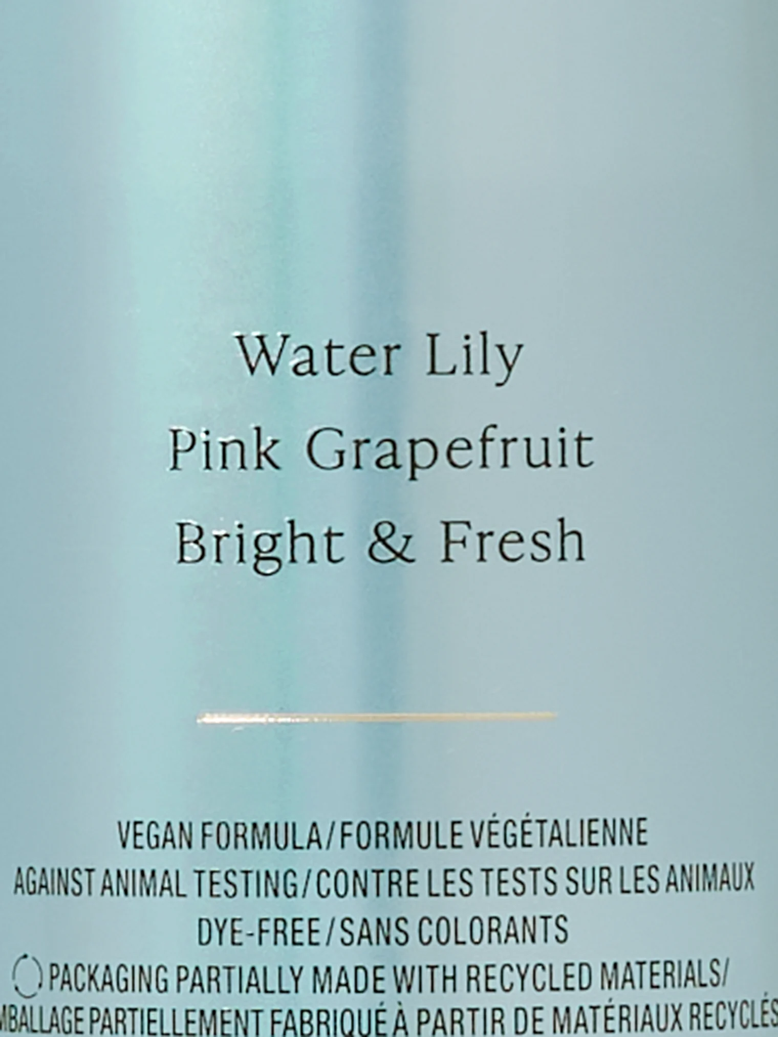 Denatūruotas alkoholis, vanduo (Aqua), kvapiosios medžiagos (Parfum), propileno glikolis, glicerinas, Hexamethylindanopyran, Tetramethyl Acetyloctahydronaphthalenes, Hydroxycitronellal, Benzyl Salicylate, Citrus Limon Peel Oil, Limonene, Geranyl Acetate, Pinene, Citrus Aurantium Bergamia Peel Oil, Citronellol, Linalyl Acetate, Rose Ketones, Linalool, Isoeugenyl Acetate, Citral, PPG-26-Buteth-26, PEG-40 Hydrogenated Castor Oil, Ethylhexyl Methoxycinnamate, Ethylhexyl Salicylate, Butyl Methoxydibenzoylmethane.